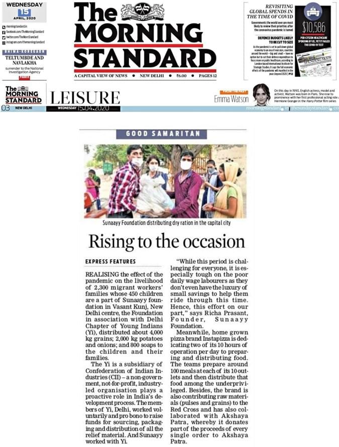 The Sunaayy Foundation has come forward to help their children and poor wage labours